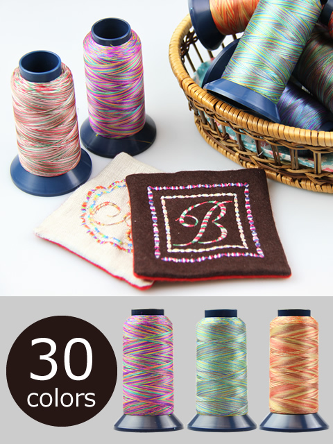 多色使いで、刺繍はもちろん、キルトステッチ・ボタンホール・ロック糸としても使え、カラフルな色合いで、華やかでオリジナリティーのある製品作りに適している。