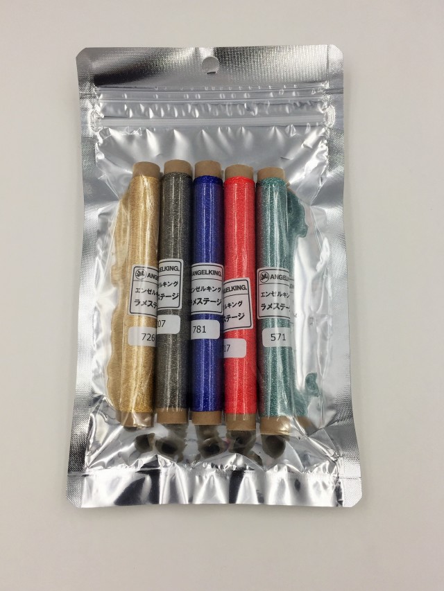 ミシン刺繍に使われる工業用ラメ糸をハンドメイドに使いやすいシガレット100m巻に加工。